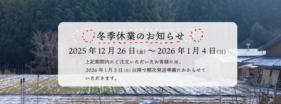 2025年12月26日(金)〜2026年1月4日(日)まで冬季休業とさせていただきます。
